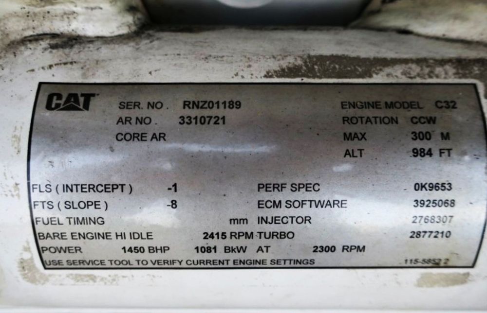 Engine RNZ00391 (2010 build, 1450 HP) – 10,495 running hours