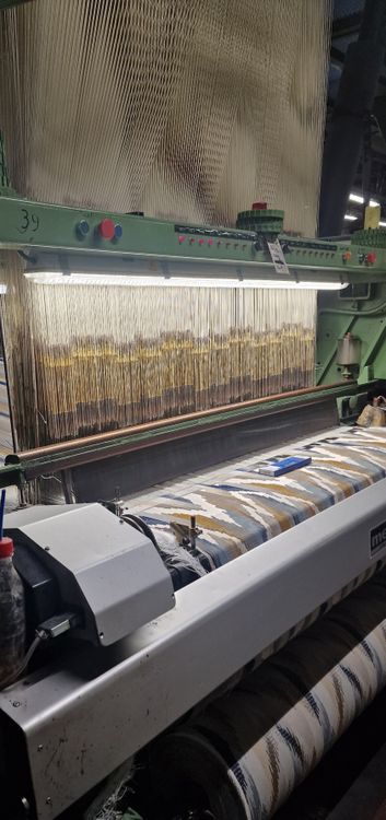 • 1280 hooks with 2 position module for warp x 4 repetitions = 5120 warp threads + 640 hooks with 3 position module for pile x 4 repetitions = 2560 pile threads (looms 40 & 42 with modified harness)