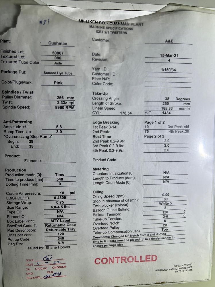* Put ups on 11” cardboard tube, package dye tubes and 7” cones