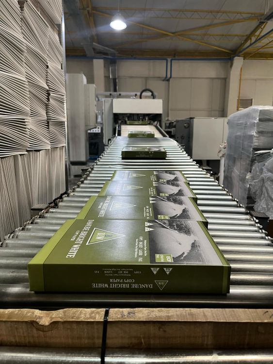 Wrapping machine for A4 reams, wrapping in paper, Nordson Hot Melt Glue