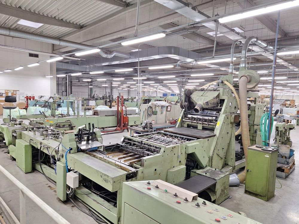 1. Line Bielomatik P 400, year 1969 yearly production is 75 tons, i.e. approx. 180 pieces of paper rolls + 10 cardboard pallets 170 pallets of goods