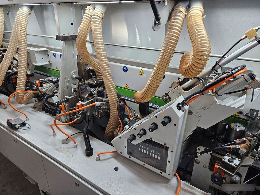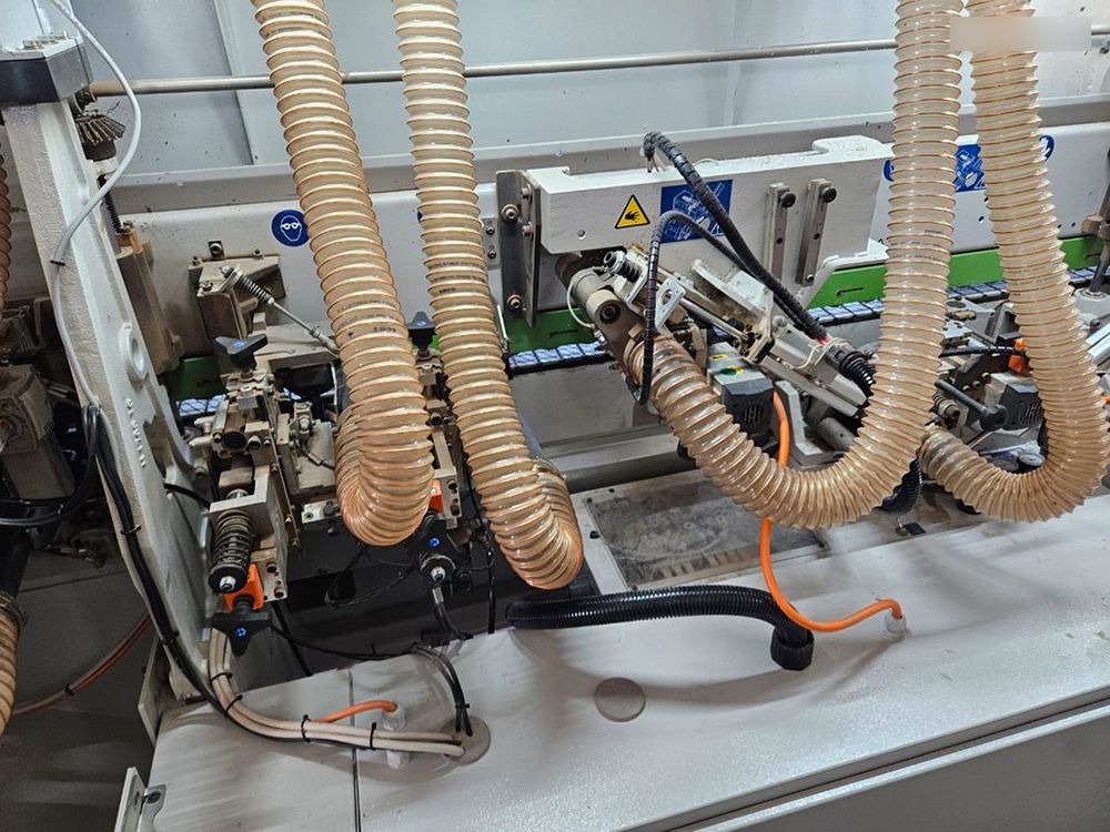 Includes: diamond infeed calibrator, end trimmer, flush trimmer, rounder, edge scraper, glue scraper, finishing brush, and infeed/outfeed spray unit.