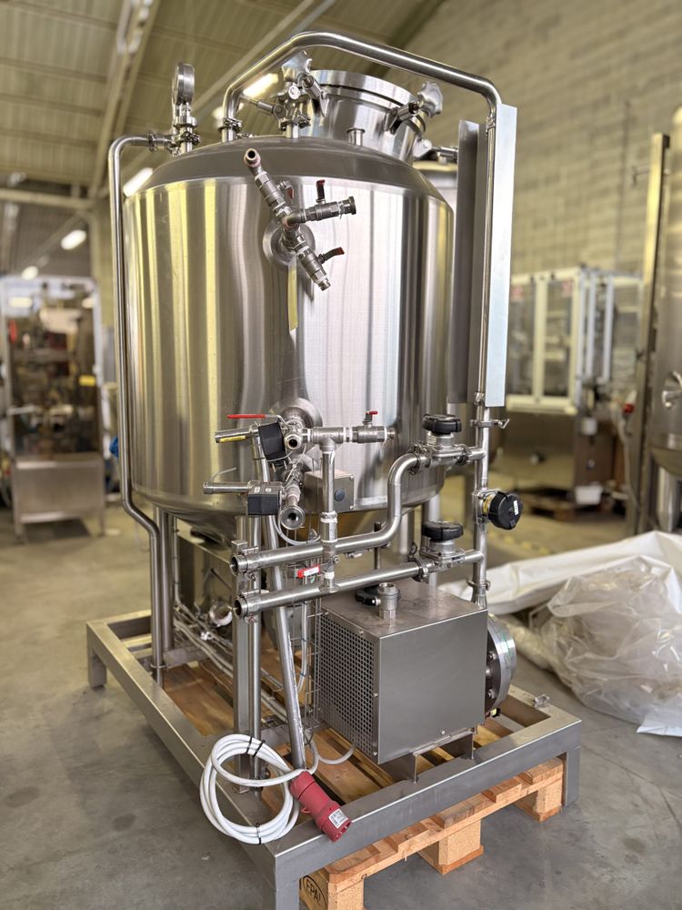 Used heated stainless steel process vessel with agitator and disperser. Designed for dispersion operations and agglomerate breakdown, it allows controlled processing cycles thanks to vessel temperature management and adjustable agitation speed.