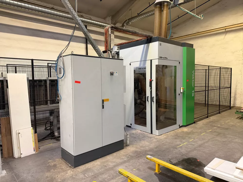 Vertical machining of furniture and cabinet parts, drilling, milling, grooving, glue injection and dowel insertion in one operation.