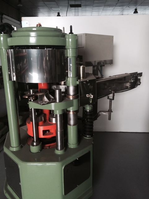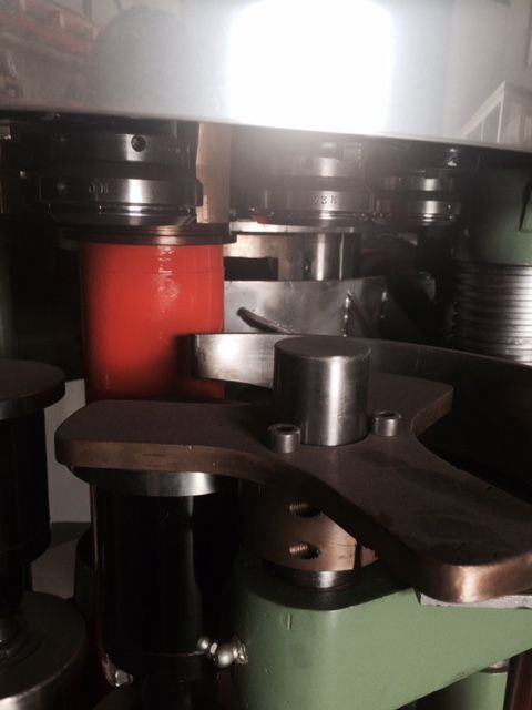 Central head with four seaming heads for rolling cans.
