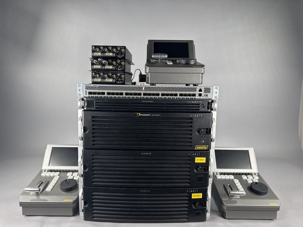 Three DC-RCP-10 (DreamCatcher Replay Control Surface's), One EMS-IP-10G24-BF-B (1RU Dedicated Arista DCS Ethernet Switch), One Supermicro CSE-818 (1RU Data Server)
