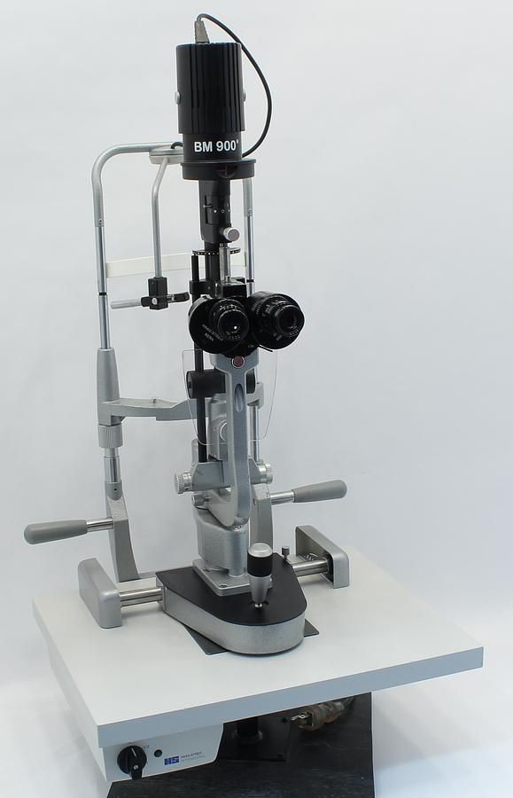 The Haag Streit BM 900 w/ White Power Supply is a 2X magnification Slit Lamp (10,16)
