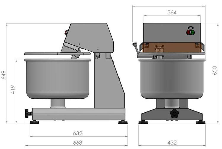 La amasadora de carne de 30 litros es una máquina de sobremesa con un bol de 32 litros que puede mezclar un máximo de 25 kg de preparación y un mínimo de 6 kg.