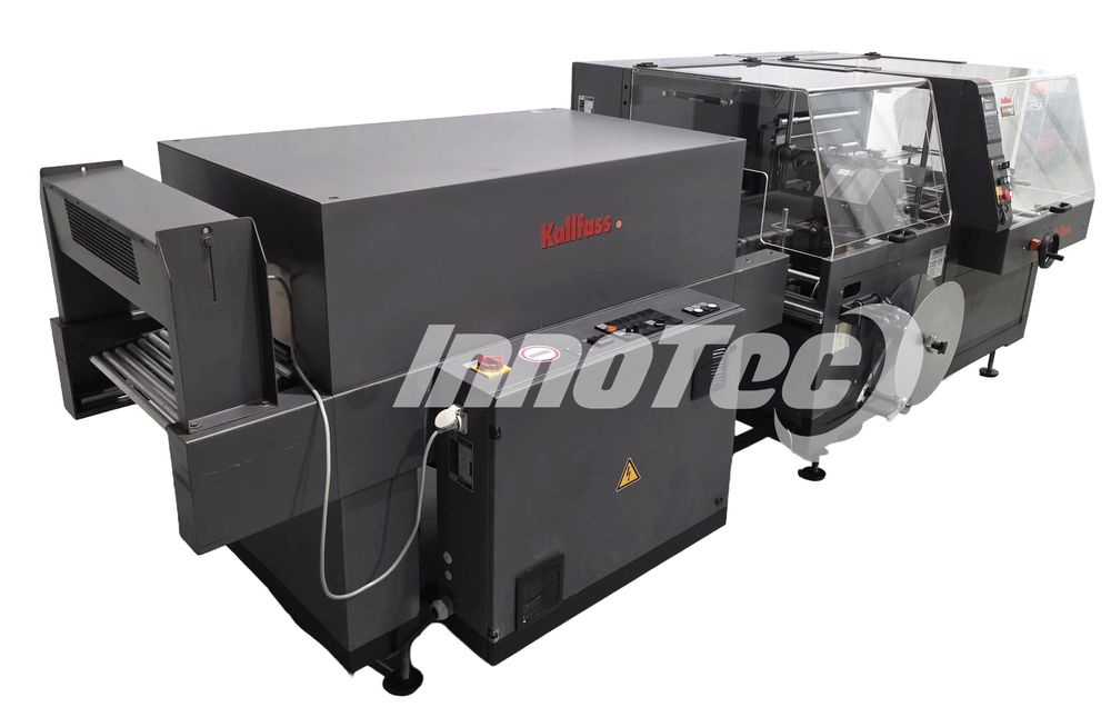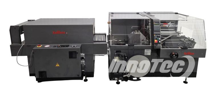 LIQUIDACIÓN de conjunto de envasadora, selladora angular, con túnel retráctil. Fabricado por KALLFASS modelo: UNIVERSA 400 STANDARD. Su estado es de ocasión equipo totalmente revisada en su totalidad (reestreno) garantizado. Construida en acero inoxidable y aluminio anodizado. La máquina esta lista para enchufar y trabajar con ella. Este sistema de retractilado que incluye en conjunto selladora y retractiladora es una solución flexible para retractilar series industriales que alternan productos de diferentes dimensiones. No necesita complicados procesos de ajuste.