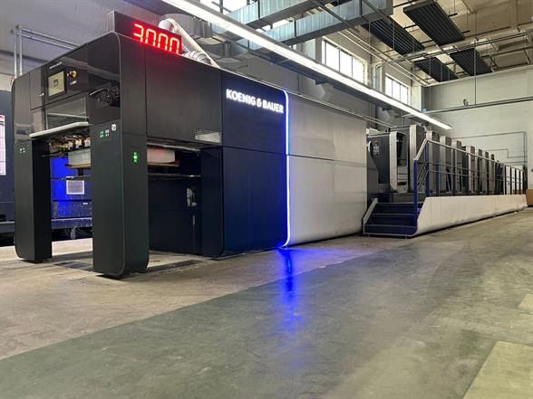 This KBA press is the new Drupa 2020 black model press Rapida 106x