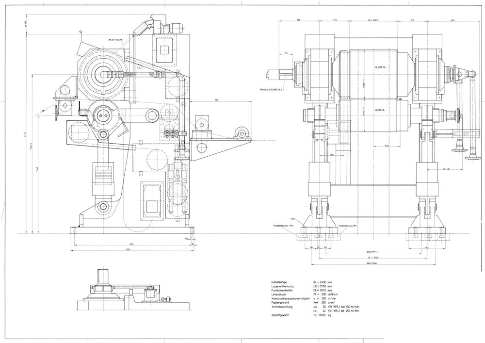 Power requirement at 280 g/m²: approx. 25 kW NRL at v = 150 m/min