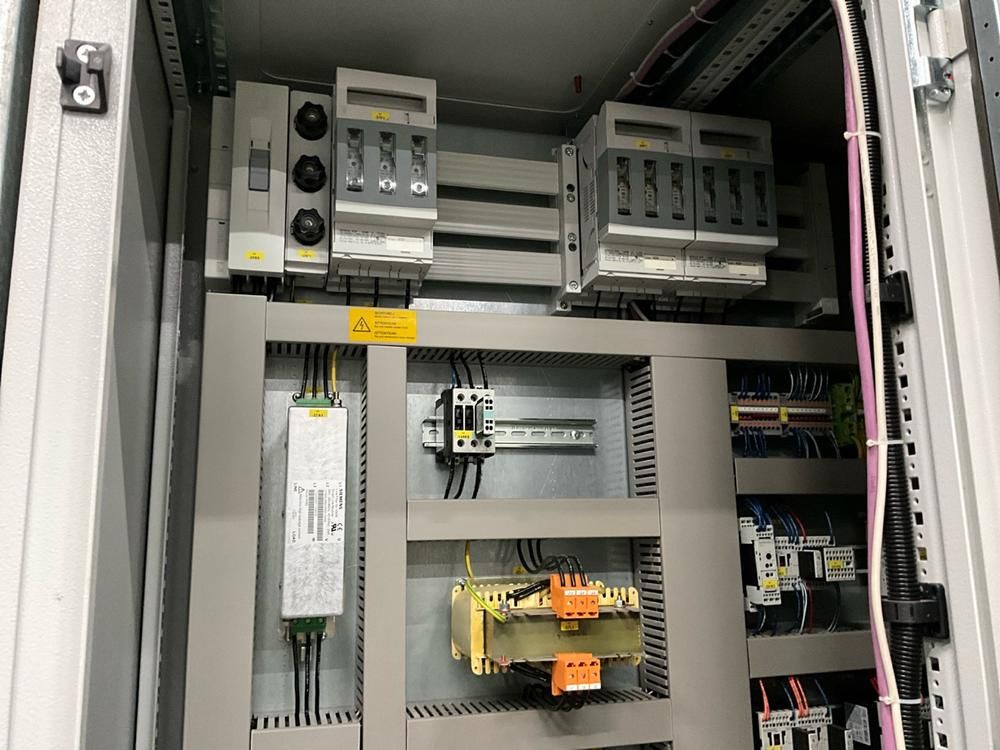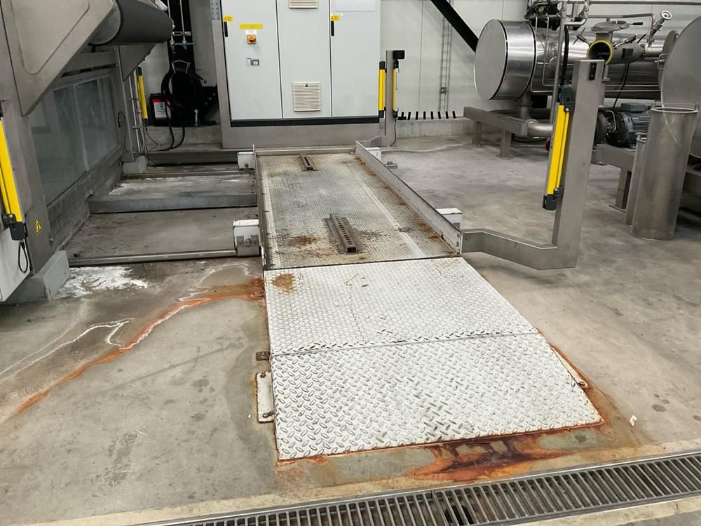 working width 2400 mm, with 2-door power cabinet with Panel pc touchscreen, pressure indicators, Leuze electronic Mild optical safety, steam heated top roller, Elsmart Erhardt & Leimer, SWA 9511 spreaders, stainless steel dosing installation in front of placed with 3 conical vertical mixing tanks diameter 750/1000 mm, up to 300 liter volume, 2 vertical mixing tanks diameter 750/950 mm up to 1200 liter volume, on frames, connected piping, peroxide station wall mounted, gavenized steel walking platform, approx 10 meter, stair, transparent plastic curtain in stainless steel frame, a.o. bleach/rest dyeing piping, analoge meters, cooling water system, expanding vessel, flow pumps, heat exchanger, circulation pumps, drive on loading wagon deck, 3-door main power cabinet with Siemens Sentron PAC3200 digital read out, etc +01S1, reference number #10599