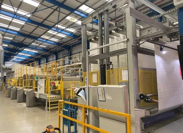 roll dimensions: 1 meter outer diameter and 2,800 kg, material weights: 480-550 g/m².