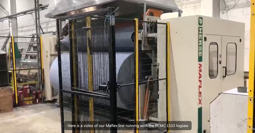 Maflex Fast AUTOMATIC industrial start stop rewinder year 2018 with PCMC log saw, and Adpack wrapper, 400 m/ mn