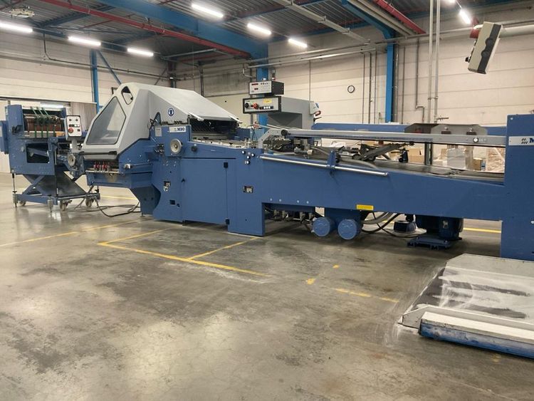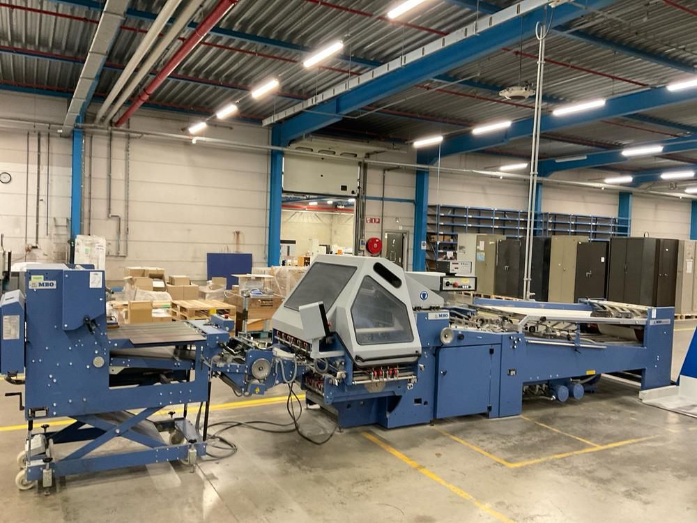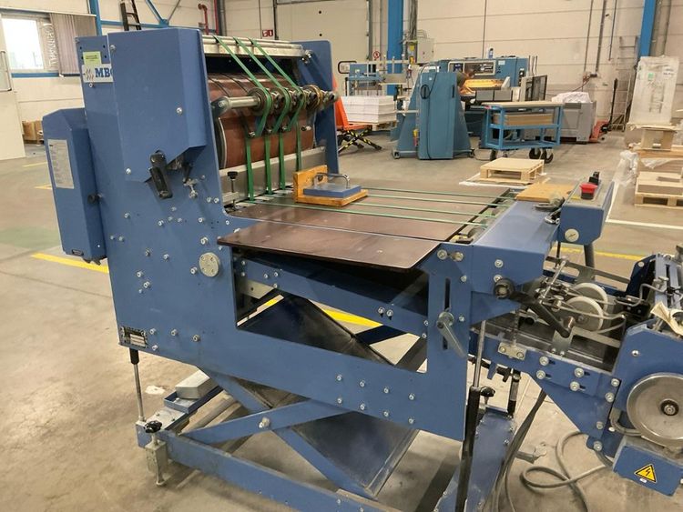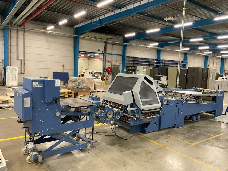 Max. paper size 180 x 160/760 x 1080 mm, with MBO central control unit, MC- control, 4 plate folds, 2 electronic knives infeed belt, total machine line length set up approx. 7000 mm, etc