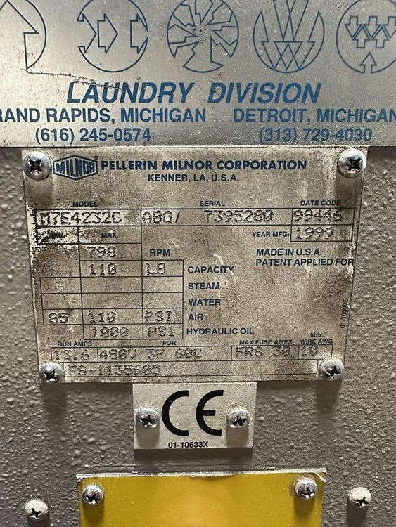 Machine was paired with Milnor CBW 110lb capacity.