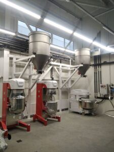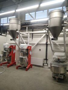 The system can feed products into dough mixers, blenders, cooking vessels, mixing units, silos, and other equipment.