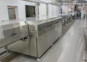 Cooling tunnels are designed for cooling food products and are widely used in the production of confectionery bars, candies, cookies, glazes, chocolate, and other products.