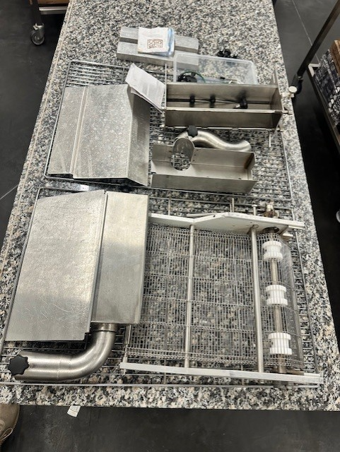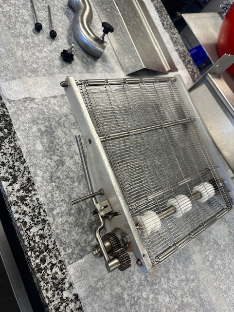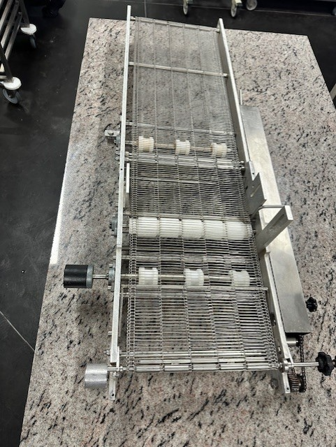 Sold with a 3m outfeed conveyor, vibrating table, and truffle outlet.