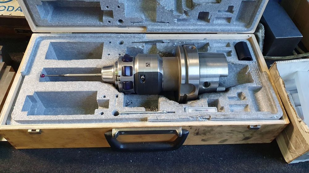 Accessories: workpiece probe, Jäger electric spindle (60,000 rpm), ISN 1000 CNC V additional rotary table, and angle plates.