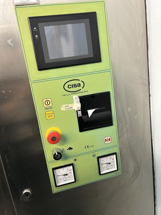 The Cisa 6410H 2P TSSV is a robust 434 liter steam sterilizer from 2008 featuring a double door pass through configuration. This design allows for strict separation between clean and sterile zones, making it suitable for pharmaceutical and hospital settings. The unit is constructed with a high quality AISI 316L stainless steel chamber and utilizes a liquid ring vacuum pump for effective air removal and deep drying. Controlled by an industrial PLC with a 7 inch touch screen, it provides reliable performance for solid, porous, and liquid loads.