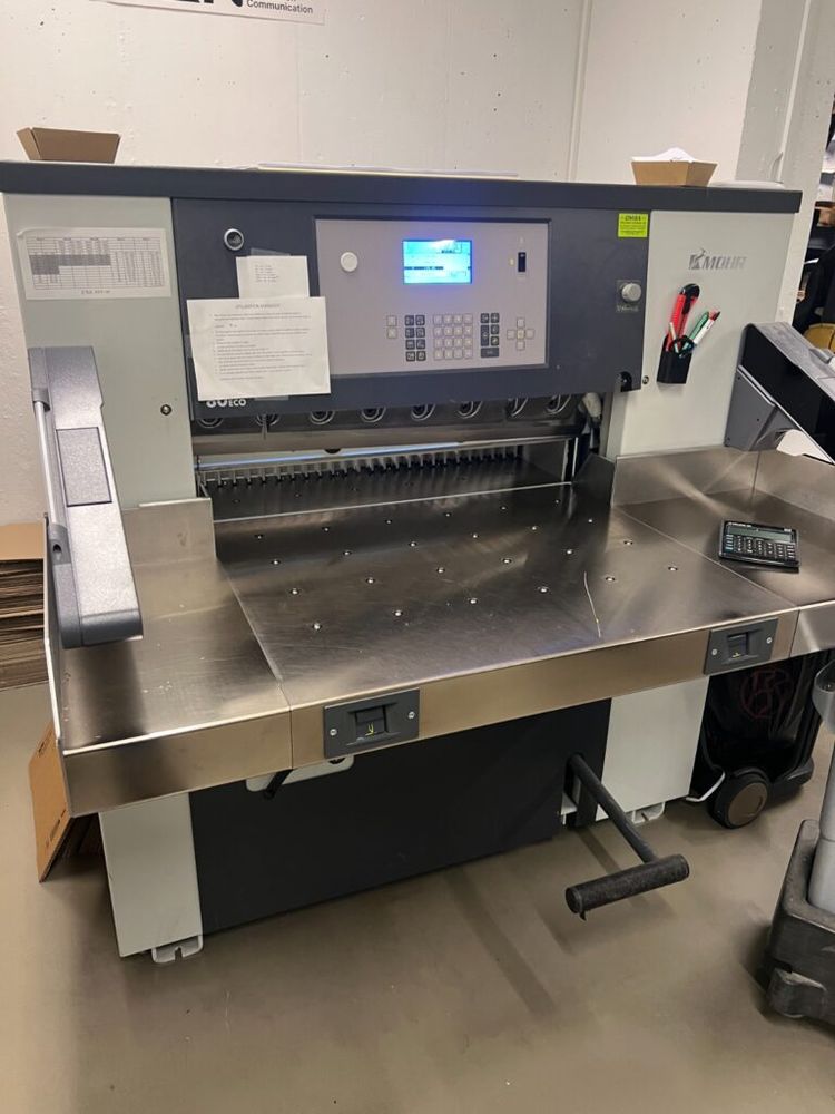 Used paper cutter with only 21,418 total cuts.