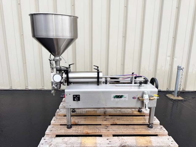 Fill range from fractional ounces to 157 Ounces (4.6L) with cylinder change, Fills products from liquids to gels and pastes, Two types of machine cycle start, auto cycle mode and single foot pedal, Pneumatically powered, 30 Liter Stainless Steel Tank/Hopper