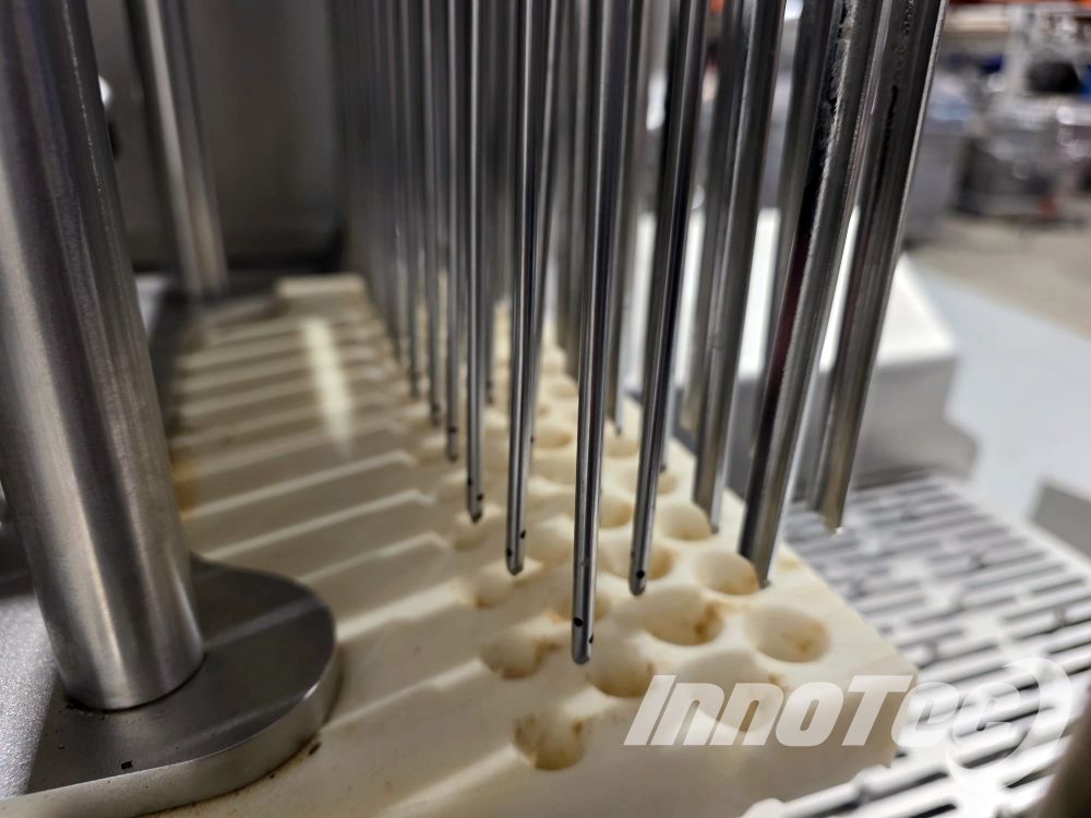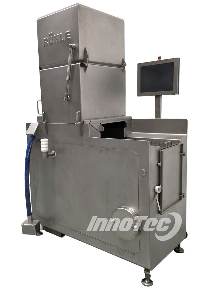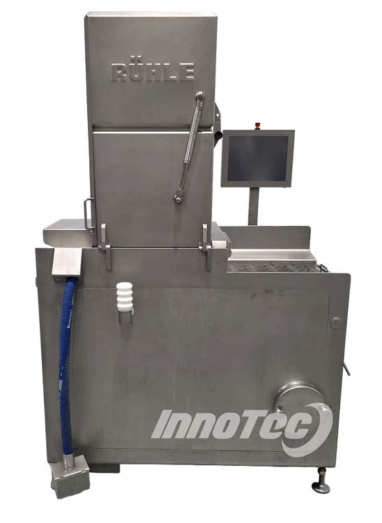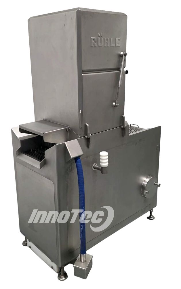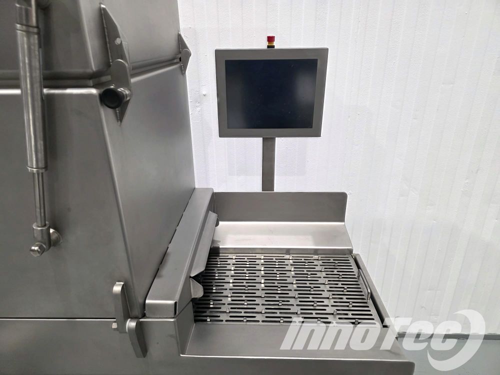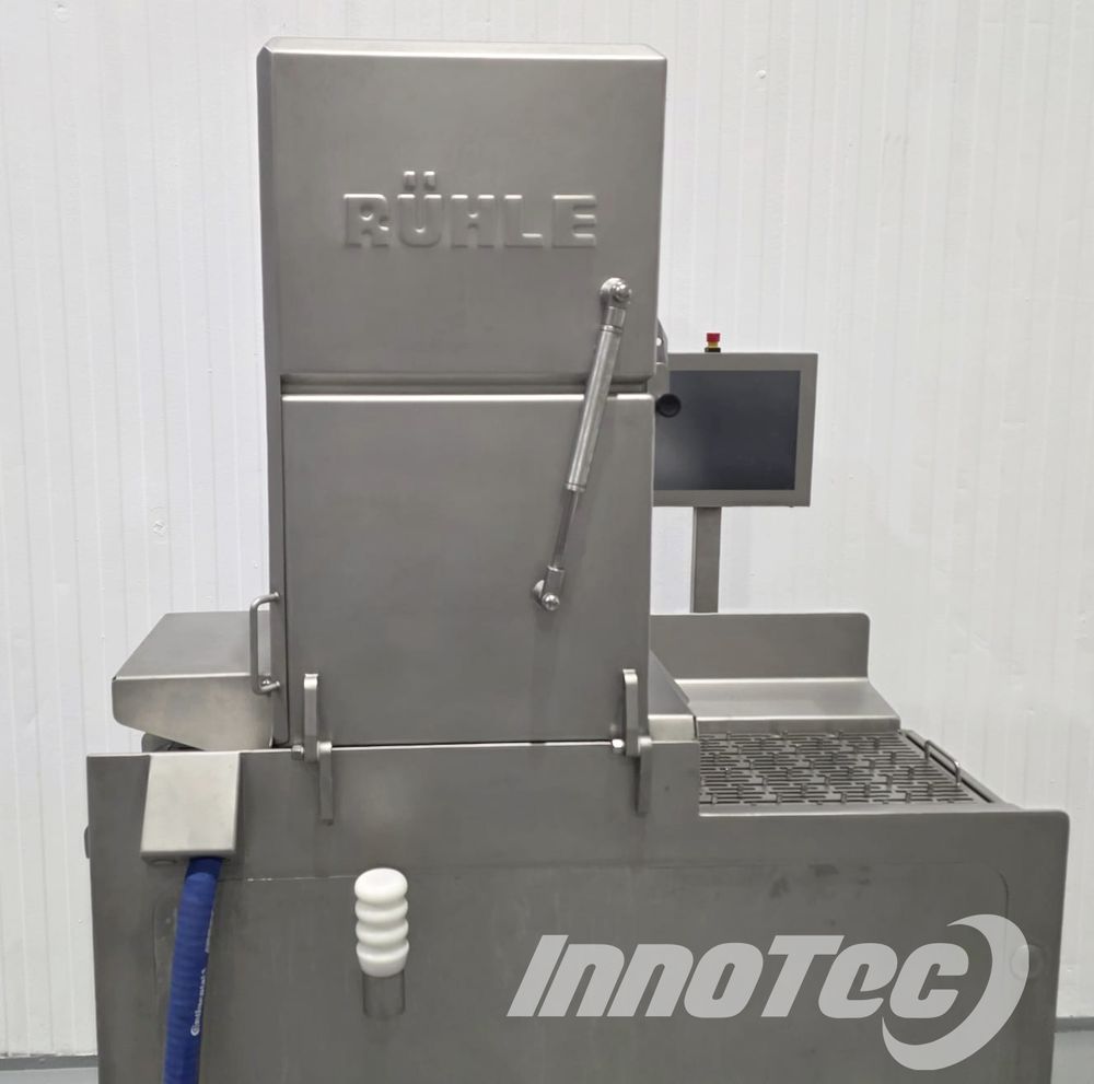 LIQUIDACIÓN de inyectora automática, fabricada por Rühle modelo IR28. Equipo de ocasión totalmente revisado, con garantía y en prefecto estado. El sistema de inyección de 28 agujas representa una novedosa construcción de máquina de última generación que cumple con todos los requisitos. Ofreciendo una superficie de contacto de 350 mm, así como 60 golpes de inyección por minuto, el IR 28 logra un rendimiento máximo de hasta 7,000 kg por hora. Incluye destenderizador de 28 agujas. Medidas de la maquina: 2040 mm alto tapas cerradas, 1750 mm largo x 920 mm ancho, ancho de cinta 350 mm.
