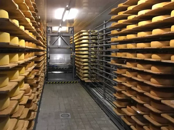 Capacity 100 cheese shelves per hour / 180 cheeses of 6 kilo per hour
