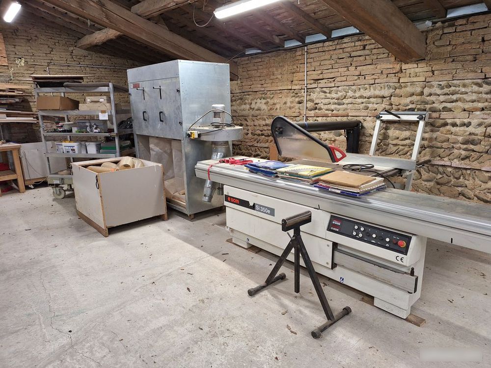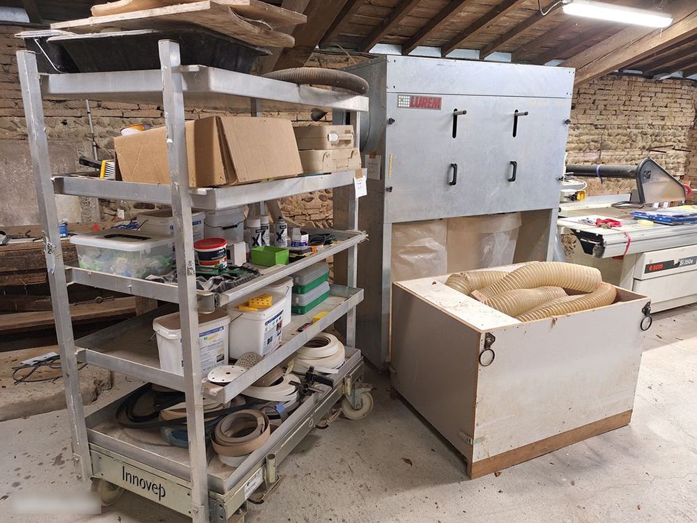 Sliding table saw with a Lurem dust extraction system (2 bags).
