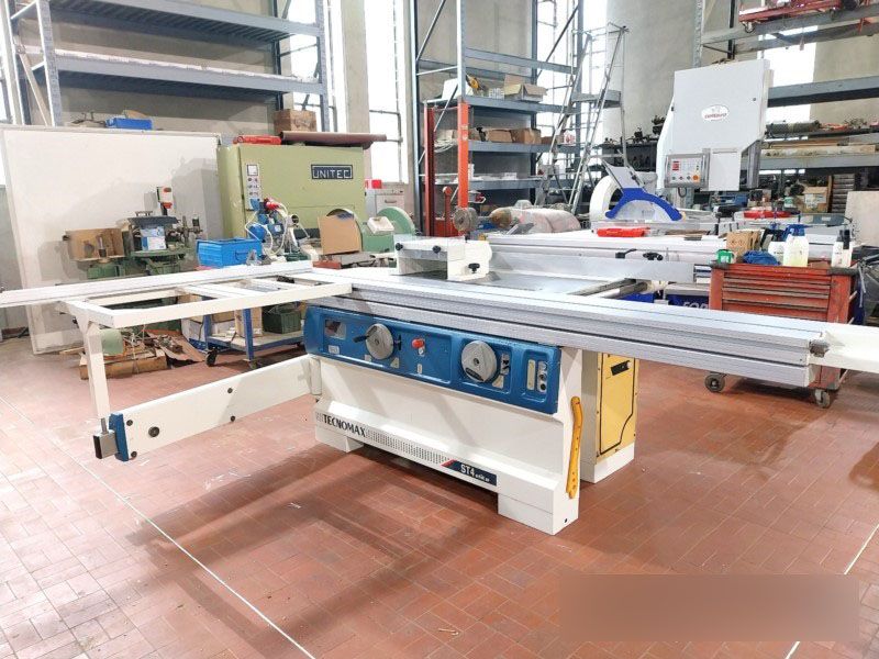 Saw spindle moulder with tilting blade and scoring unit for carpentry, furniture,