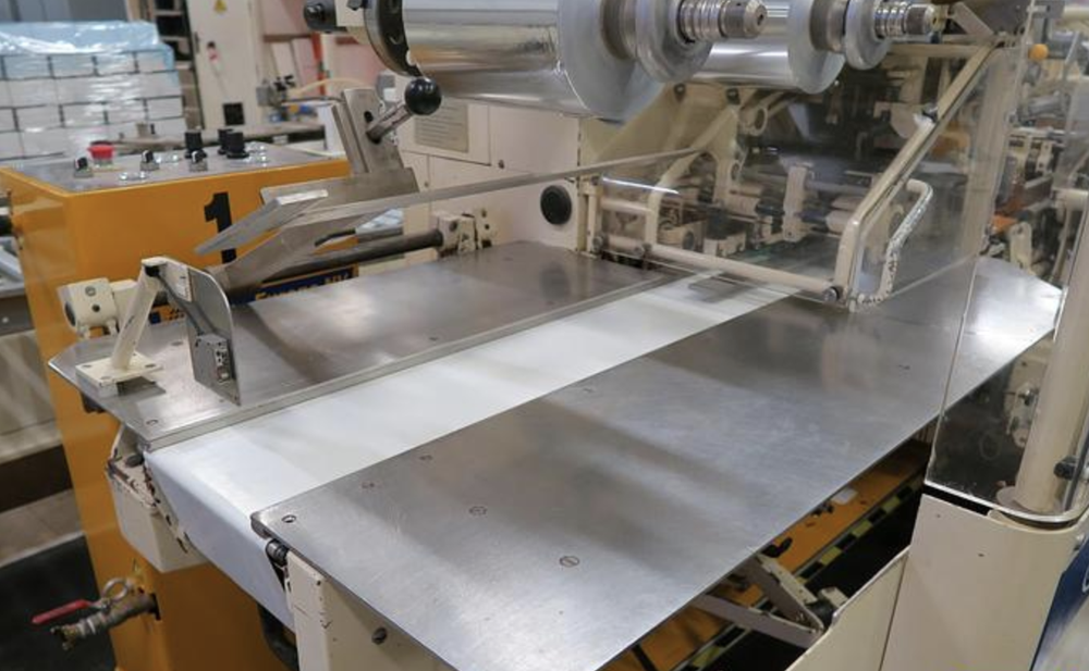 Foil fed from reel, label or cardboard outer from a stack.