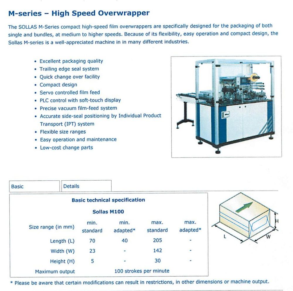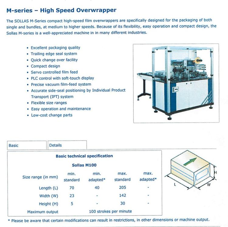 Other machines similar to Sollas M100 Overwraper with tear strip device