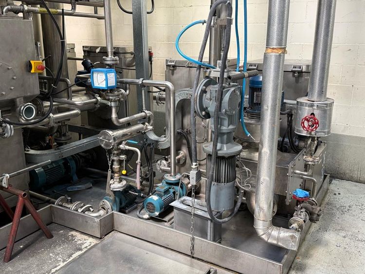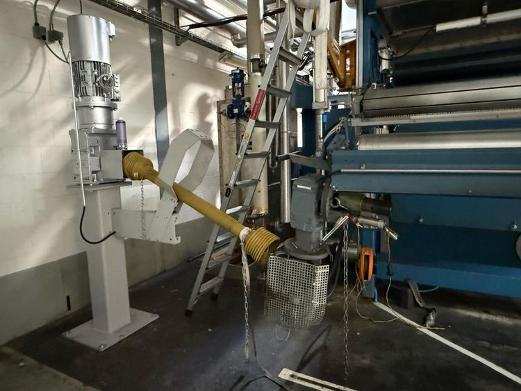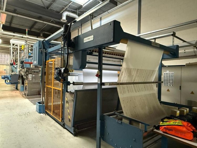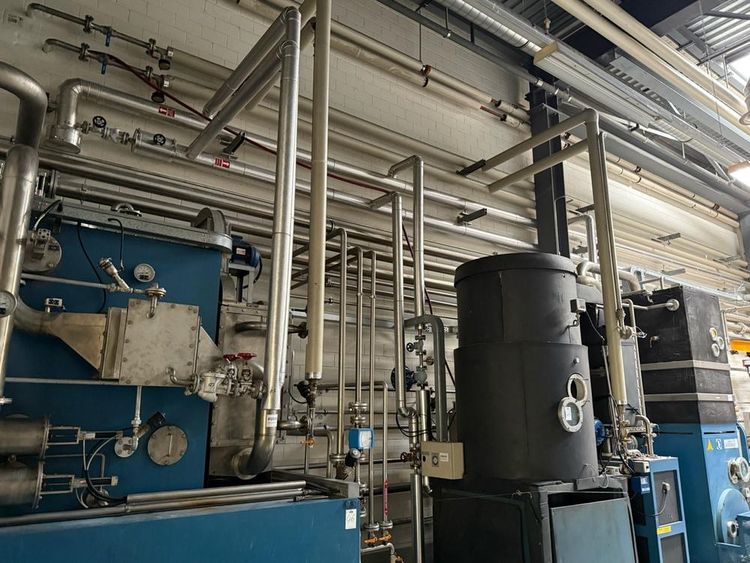 capacity 400 gram/m, working speed 25-30 meter/minute and 5-50 mm, rinsing 1600 liter/hour, roll witdh 2400 mm, working width 2200 mm, 135 kW, steam capacity 750 kg/hour, 6 bar, own weight 23000/32000 kg, consisting of: Corino unwinder, type atretzzatura entrata uscita lavaggio, serial 249/01, year 2001, with 7-fold roll system, FLC3 control, Rockwell autonation, stainless washing in solvent installation, included with 4 square dosing tanks with lid, pumps, measurement Krohne, pneumatic valves, roll wagon stand, infeed, washing sieve, Monntforts touch screens fabric control, Qualitex, Mahlo systems, outlet winder, wagon stand winder, with axle, side placed pre and main destilators, Perchloroetylene tank dimension3000 x 1500 x 1400 mm, with blower, etc, stainless leaking floor basin, stainless square tank dimension 2250 x 1300 x 1050 mm, with lid, blower, pumps, 4 various stainless steel filters, Kone swivelling arm crane cap. 250 kg, wall mounted, stainless round water tank diam. approx. 1000 x 1800 mm, Matica stainlees steel round tank, volume 8000 liter, filling volume 7600 liter, control box, center placed rib tank, diam. approx. 900 x 2750 mm, leaking basin with small pump, 5-door main switch power cabinet with touch screen, 2 single power cabinets, combined piping, pumps, valves, total needed surface approx. 8000 x 25000 mm, dismantling under auspician Dome Auctions, reference number #10149