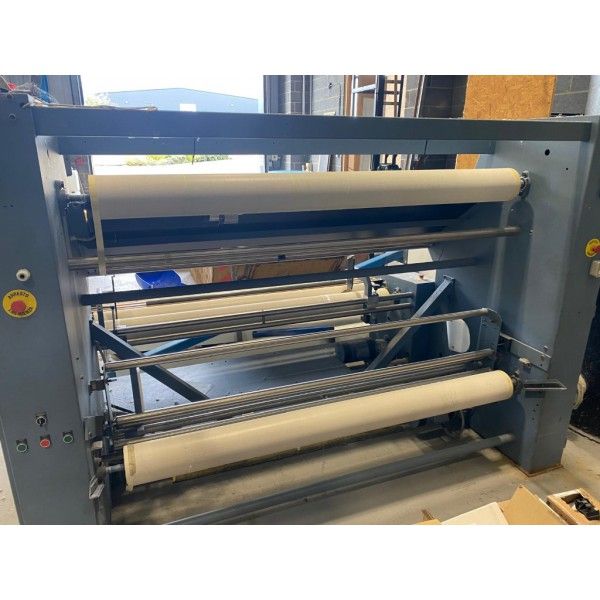 REWIND BY A PAIR OF GUIDED DRIVEN BATCH ROLLERS WITH BATCH END GUIDES.