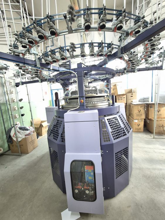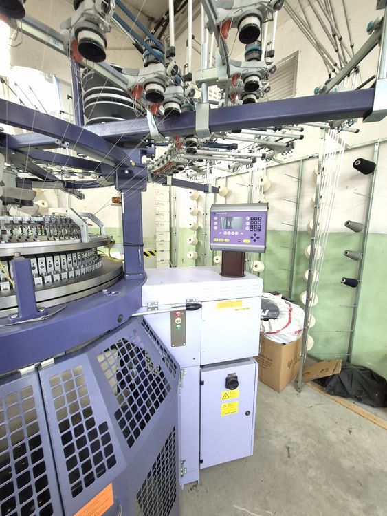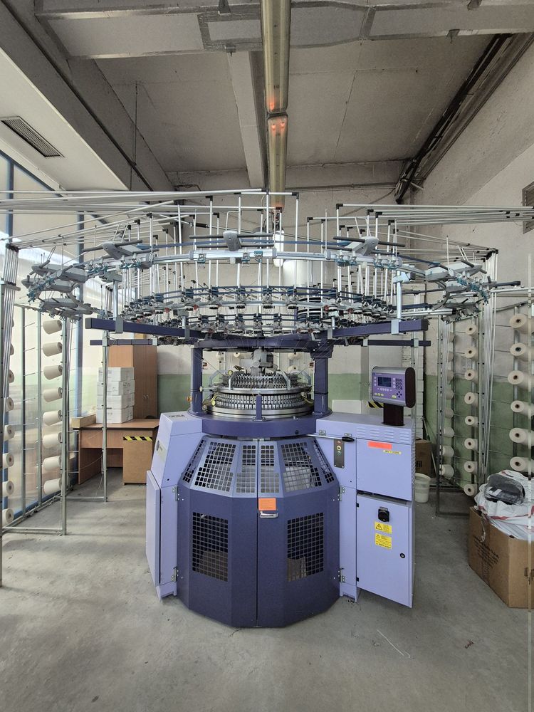 The circular knitting machine was purchased in 2016 directly from the manufacturer. It has 300 hours of operation and is in very good working condition. It is almost like a new machine. It has only been used for knitting tests for T-shirt production. It is installed and can be tested.