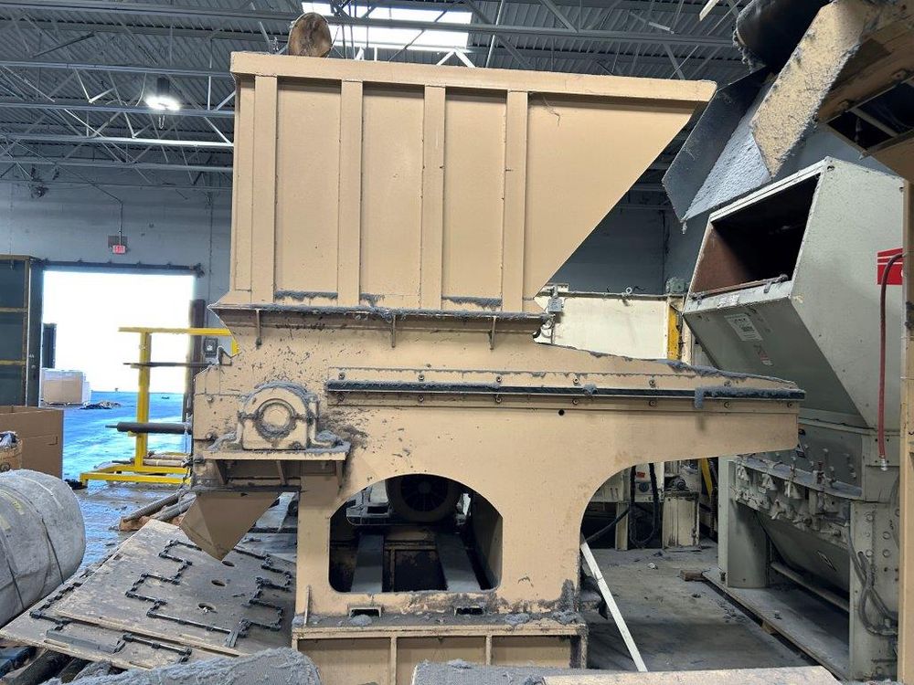 In feed conveyor to shredder – discharge conveyor under shredder to incline conveyor to Cumnberland X1000 Granulator